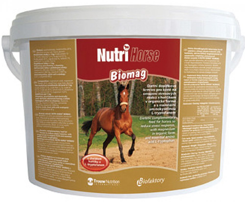 INDIKACE: Nervózní nebo nesoustředěný kůň nemůže podat optimální výkon. Kombinace vysoce účinných látek v NutriHorse Biomag umožňuje přirozeně koně zklidnit. Esenciální aminokyselina L-tryptofan, která je prekurzorem neuropřenašeče serotoninu, organicky vázaný hořčík, který udržuje pozitivní tonus svalů a vybrané vitaminy představují základní složky, kterými kůň znovu získá vnitřní pohodu a klid.