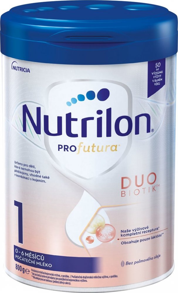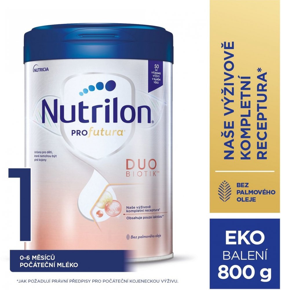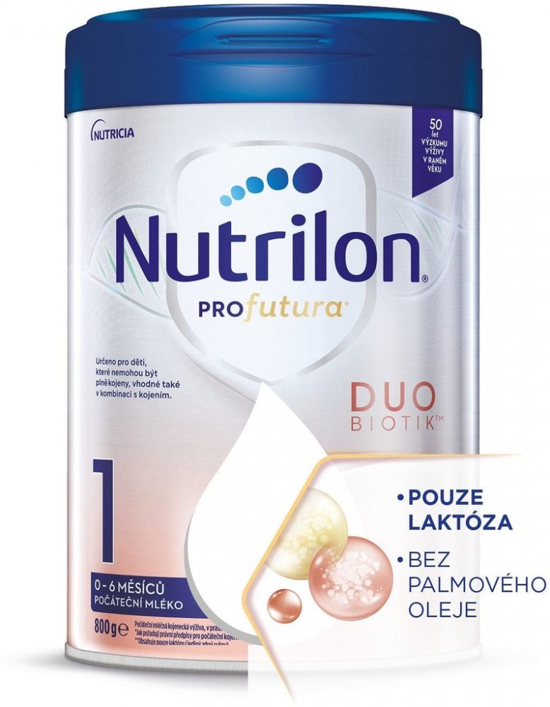 Pro výživu novorozenců a kojenců je nejpřirozenější a nejvhodnější stravou, zastoupením svých živin a jejich kvalitou, mateřské mléko. Nutrilon® Profutura® DUOBIOTIK™ 1 počáteční mléko by mělo být používáno na základě doporučení lékaře nebo osoby kvalifikované v oblasti výživy lidí, farmacie nebo péče o matku a dítě. Výrobek je určen pro výživu kojenců od narození, nemohou-li být plně kojeni. Je vhodný pro výživu kojenců během prvních měsíců života až do doby zavedení vhodných příkrmů. Pro zdraví kojenců je důležité důsledné dodržování návodu na přípravu i uvedených doporučení. Podporujeme doporučení WHO - plné kojení v prvních 6 měsících věku a pokračování až do 2 let a dále, spolu se zaváděním bezpečné a vhodné doplňkové stravy. Potravina pro zvláštní výživu.