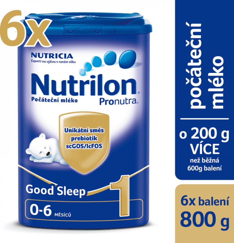 Nutrilon 1 Pronutra Good Sleep 6x 800g Nutrilon 1 počáteční mléko Pronutra Good Sleep pro extra porci spokojenosti určené pro výživu kojenců od narození do 6. měsíce, kteří již nejsou nebo nemohou být plně kojeny. Nutrilon 1 Extra je vhodnou volbou počáteční mléčné kojenecké výživy pro vaše miminko, pokud již není nebo nemůže být plně kojeno. Pro extra spokojenost. Praktické znovu uzavíratelné bal...