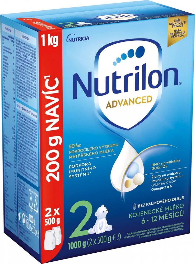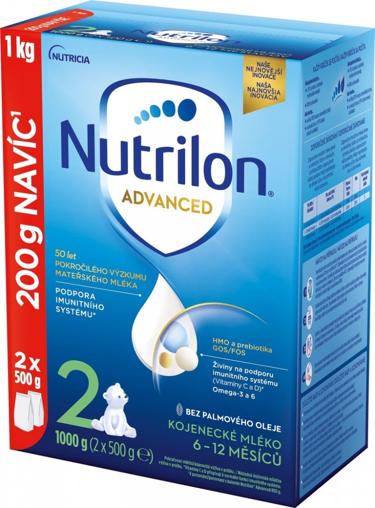 Pokračovací mléko Nutrilon 2 Advanced je speciálně vyvinuté pro podporu imunitního systému a normálního vývoje vašeho miminka. Patentovaná receptura je inspirovaná výzkumem mateřského mléka. Pokračovací a batolecí mléka Nutrilon jsou vyráběna z vysoce kvalitního mléka od kraviček z kontrolovaných chovů, které zaručují tu nejvyšší kvalitu. Nutrilon 2 má být pouze součástí smíšené a vyvážené stravy, nemá se používat jako náhrada mateřského mléka během prvních šesti měsíců života. Rozhodnutí o zahájení podávání příkrmů, včetně jakékoli výjimky z pravidla věku šesti měsíců, by mělo být přijímáno jen na radu nezávislých osob kvalifikovaných v lékařství, výživě nebo farmacii nebo jiných odborníků odpovědných za péči o matku a dítě, v závislosti na individuálním růstu a potřebách kojence.