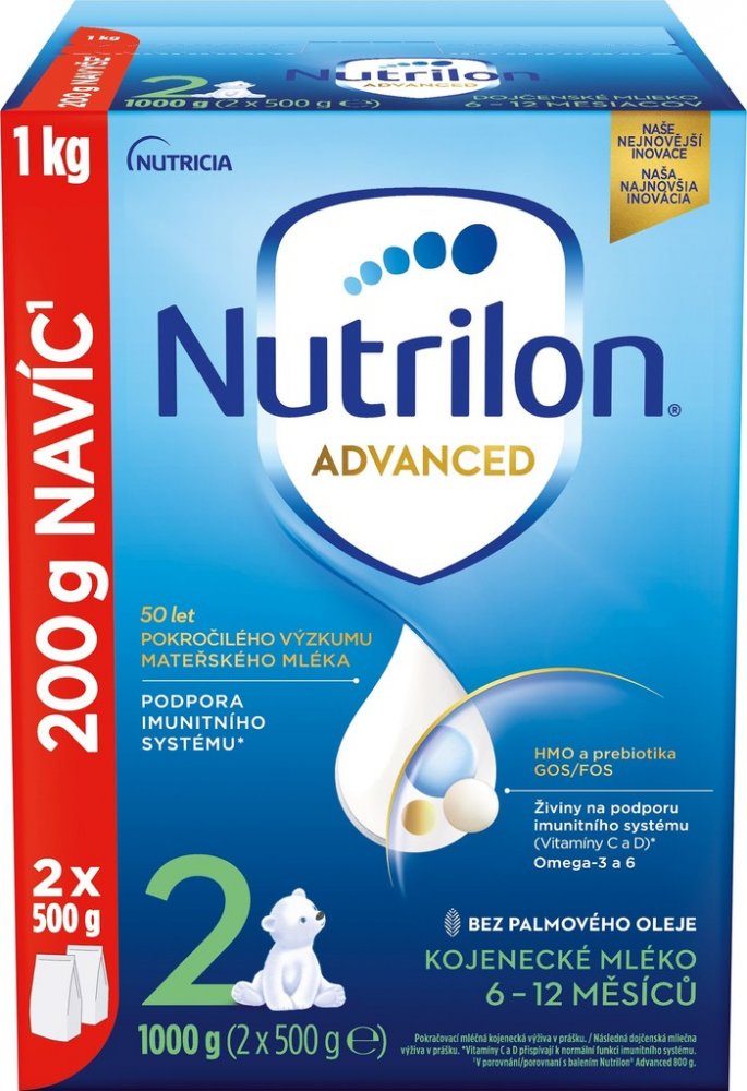 Kojení je nejlepší způsob výživy kojenců. Nutrilon 2 Advanced je určený pro kojence od uk. 6. měsíce. nemá se používat jako náhrada mateřského mléka během prvních 6 měsíců. Není vhodný jako jediný zdroj výživy. Rozhodnutí o zahájení podávaní příkrmů, včetně výjimky z pravidla věku 6 měsíců, by mělo být přijímáno jen na základě doporučení lékaře nebo osoby kvalifikované v oblasti výživy a farmacie a v závislosti na individuálních potřebách kojence. Podporujeme doporučení WHO - plné kojení v prvních 6 měsících věku a pokračování až do 2 let a dále, spolu se zaváděním bezpečné a vhodné doplňkové stravy. Připravenou stravu spotřebujte do 2 hodin, poté zlikvidujte. Neohřívejte v mikrovlnné troubě, hrozí opaření dítěte. Nikdy nepřidávejte do výživy více odměrek, než je stanoveno, ani cokoliv jiného. Dohlédněte na hygienu prvních zoubků. Pro zdraví kojenců je důležité dodržovat návod na přípravu a uvedená doporučení.