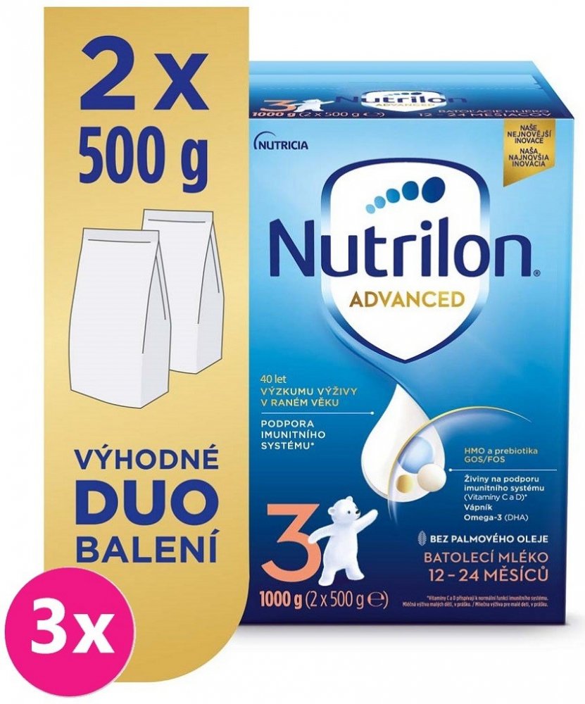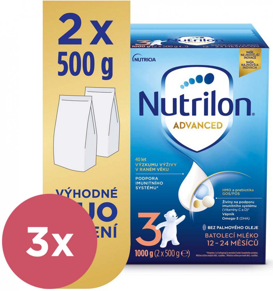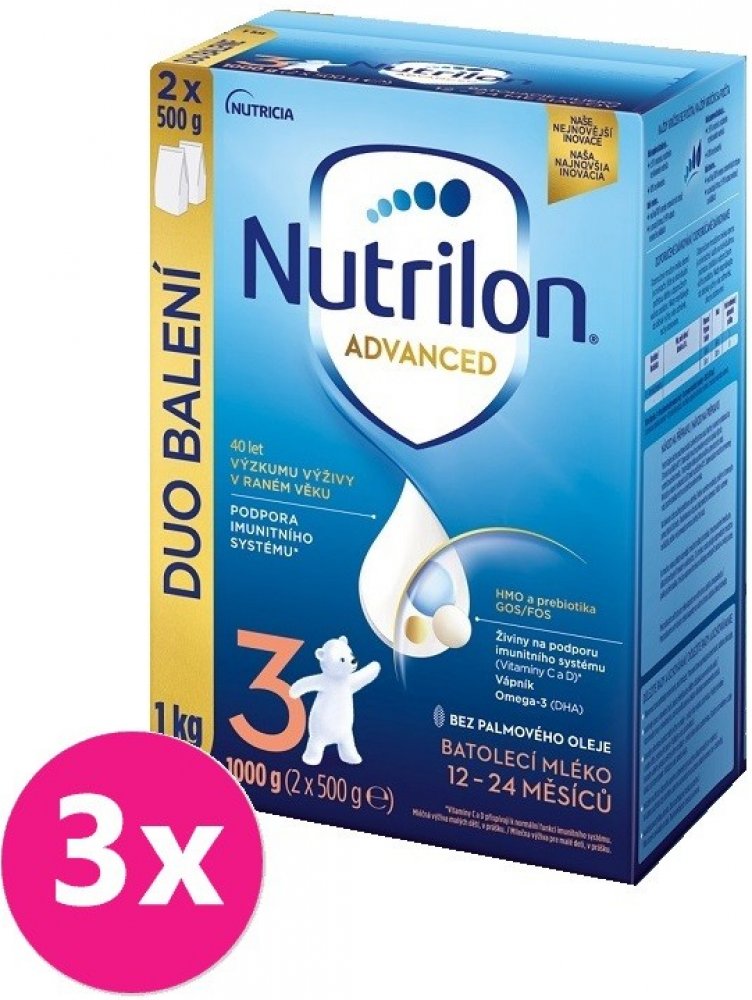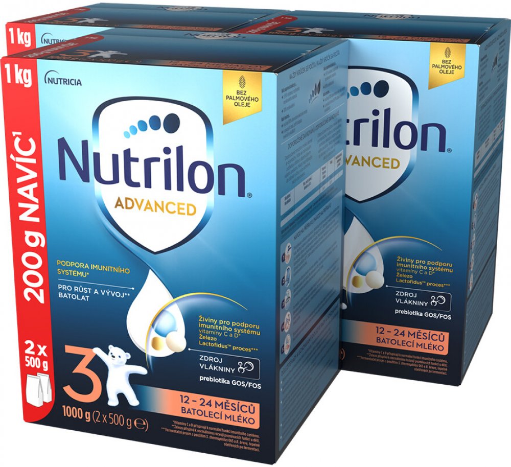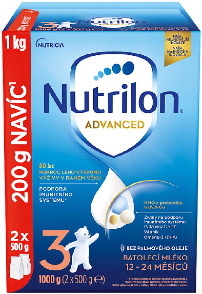 Objevte naši nejnovější inovaci mlék Nutrilon 3 Advanced, speciálně vyvinutou pro podporu imunitního systému A normálního VÝVOJE. Naše jedinečné složení obsahuje naši patentovanou směs oligosacharidů GOS/FOS a LCP, oligosacharid mateřského mléka 3'GL (3'galaktozyllaktóza), který přináší náš unikátní proces výroby, vitamíny C a D, které přispívají k podpoře imunity a také vápník . Naše inovativní s...