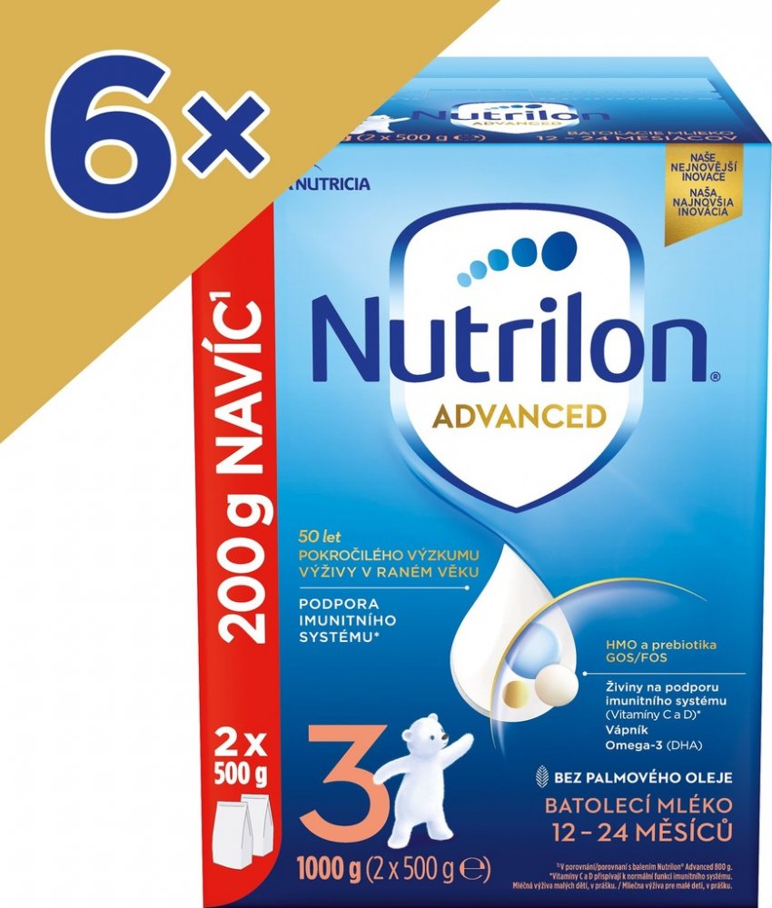 Nutrilon 3 Advanced má být součástí smíšené a vyvážené stravy dítěte a není náhradou mateřského mléka. Pro zdraví dětí je důležité důsledné dodržování návodu na přípravu i uvedených doporučení. Nevhodné pro děti do 1 roku věku.