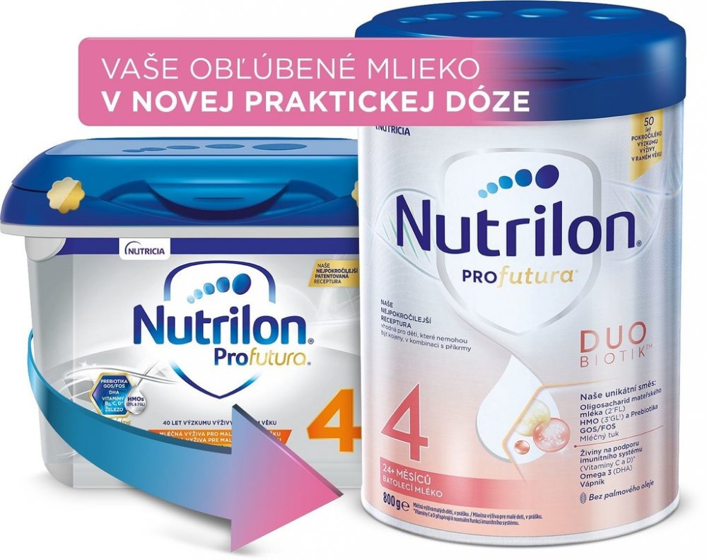 Výrobek je určen pro výživu dětí od dvou let věku. Nutrilon Profutura DUOBIOTIK 4 má být pouze součástí smíšené a vyvážené stravy dítěte a není náhradou mateřského mléka. Pro zdraví dětí je důležité důsledné dodržování návodu na přípravu i uvedených doporučení. Nevhodné pro děti do jednoho roku věku. Kojení je pro děti nejlepší. Podporujeme doporučení WHO – plné kojení v prvních šesti měsících věku a pokračování až do dvou let a dále, spolu se zaváděním bezpečné a vhodné doplňkové stravy. Mléčná výživa malých dětí, v prášku.