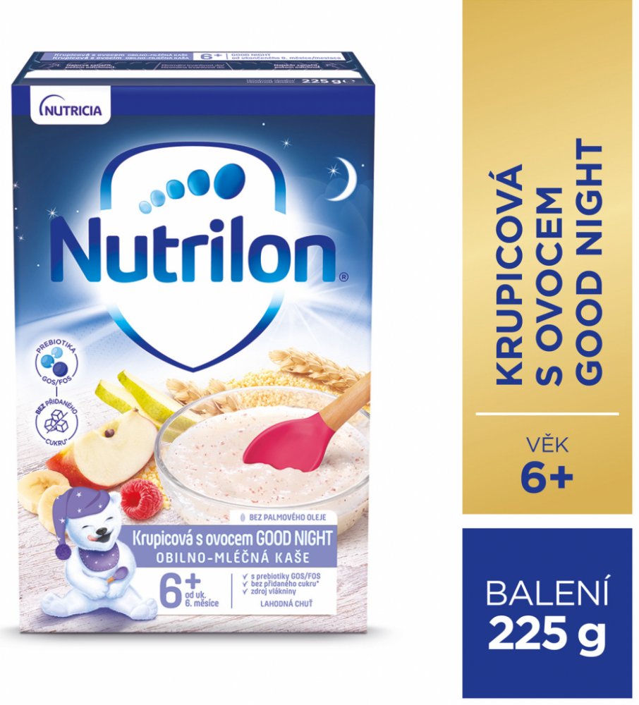 Oblíbená krupicová kaše je navíc zpestřena o mix ovoce. Obsahuje prebiotika GOS/FOS a je vhodnou volbou ve večerním čase. Samozřejmě je bez přidaného cukru*.
