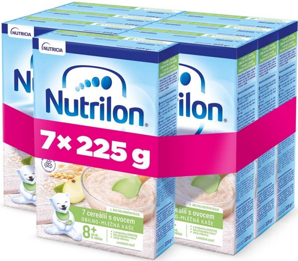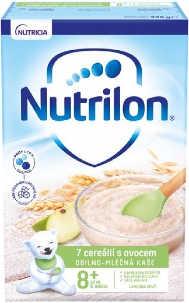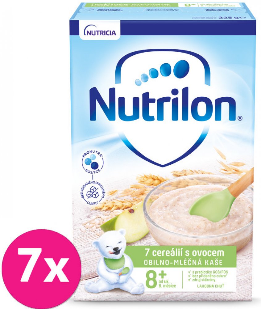 Mléčná kaše Nutrilon Pronutra 7 cereálií s ovocem Mléčná kaše se 7 druhy cereálií a ovocem Nutrilon Pronutra je ideální kaší pro děti od ukončeného 8. měsíce, které chtějí vyzkoušet nové chutě. Kaše Nutrilon Pronutra představuje přirozený zdroj bílkovin a vlákniny, které jsou pro naše ratolesti tolik důležité. Kaše Nutrilon Pronutra obsahuje klinicky testovanou směs prebiotik GOS/FOS, minerální lá...