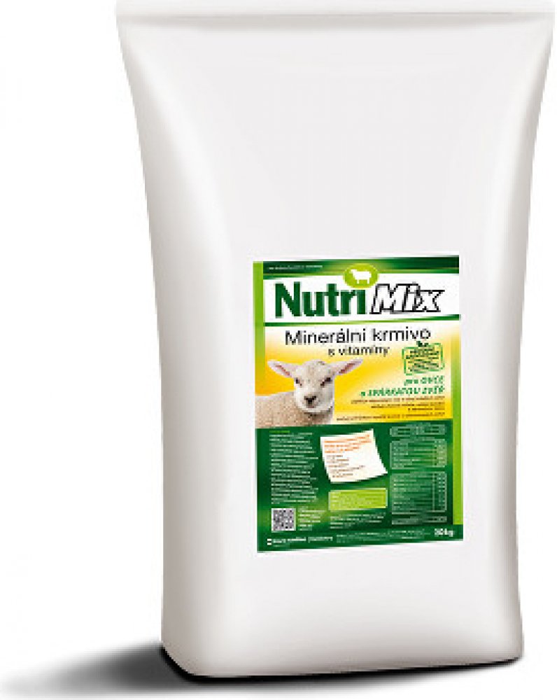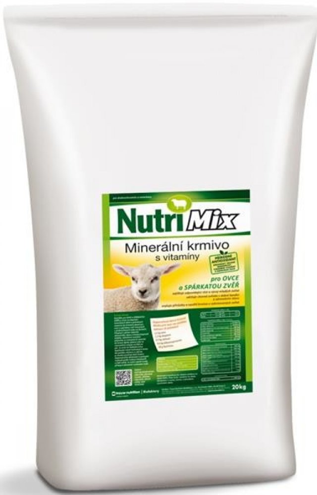 Minerální krmivo pro jehňata, ovce a spárkatou zvěř. Denní doplnění minerálních látek a vitaminů. zajišťuje odpovídající růst a vývoj mladých zvířat udržuje chovná zvířata v dobré kondici a zdravotním stavu zvyšuje přírůstky a využití krmiva u vykrmovaných zvířat je bez mědi obsahuje organicky vázané mikroprvky pro lepší využitelnost, přírodní antioxidanty, chráněné vitaminy skupiny B na podporu energetického metabolismu a esenciální oleje na snížení produkce metanu v bachoru PROBLÉM Nedostatečná nebo nevyvážená krmná dávka pro ovce nebo spárkatou zvěř v odchovu nebo ve výkrmu má za následek snížené přírůstky, nižší využitelnost krmiva, menší životaschopnost a horší zdravotní stav. ŘEŠENÍ Nutrimix pro ovce a spárkatou zvěř je určen na doplnění minerálních látek a potřebných vitaminů do krmných dávek zvířat chovaných v drobnochovech nebo oborách. Přispívá k udržení dobrého zdravotního stavu a životaschopnosti mláďat. Je určen ke každodennímu doplňování méně hodnotných krmiv. SLOŽENÍ v...