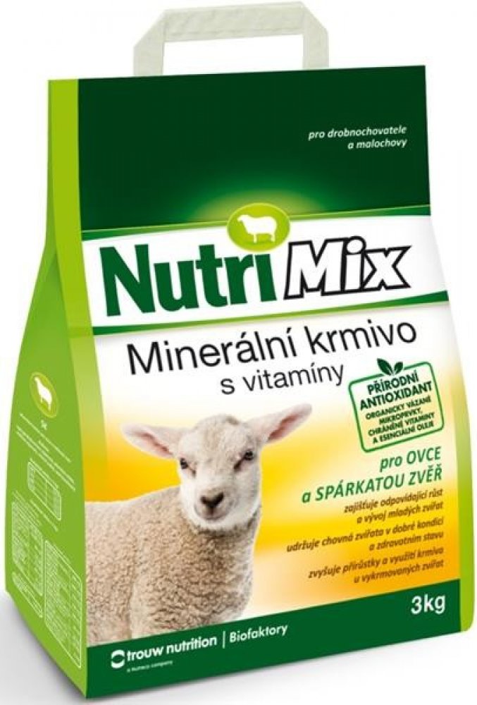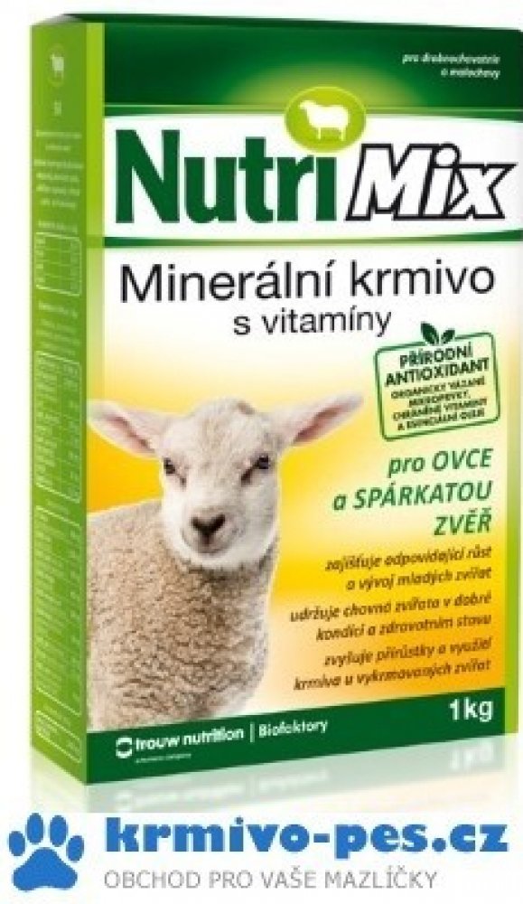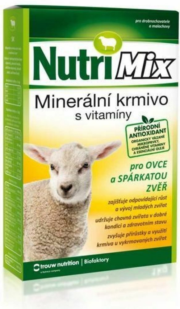 Nutrimix pro ovce a spárkatou zvěř je určen na doplnění minerálních látek a potřebných vitaminů do krmných dávek zvířat chovaných v drobnochovech nebo oborách. Přispívá k udržení dobrého zdravotního stavu a životaschopnosti mláďat. Je určen ke každodennímu doplňování méně hodnotných krmiv.