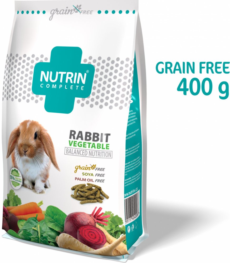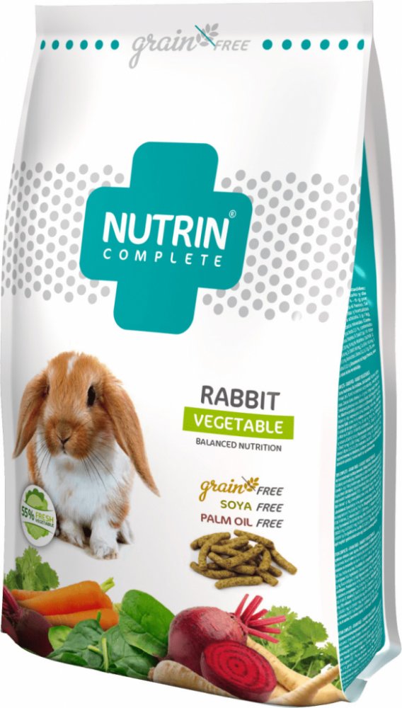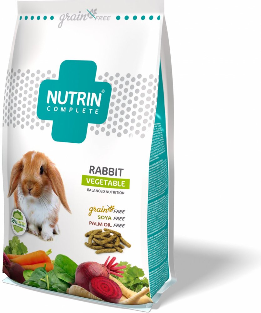 Kompletní bezobilné extrudované krmivo Nutrin Complete Grain Free pro králíky.