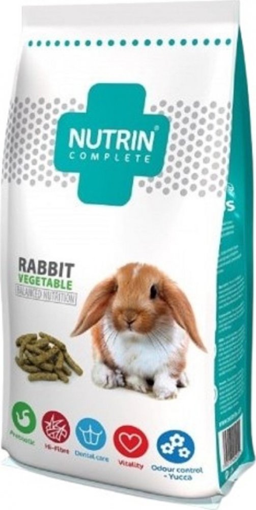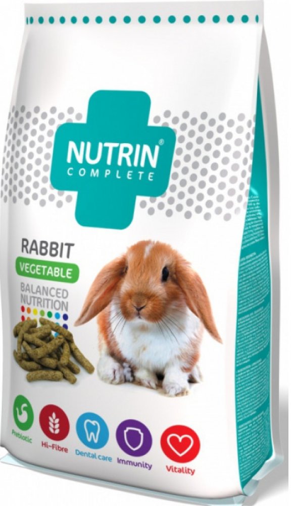 U králíků v zájmovém chovu může docházet vlivem neadekvátní diety k častému problému přerůstání zubů. Vysoký obsah vlákniny, tvar, textura a tvrdost granulí NUTRIN Complete, nutí králíky hlodat a přežvykovat. Zuby se o sebe rovnoměrně otírají a může tak docházet k pravidelné redukci jejich přirozeného přírůstku.