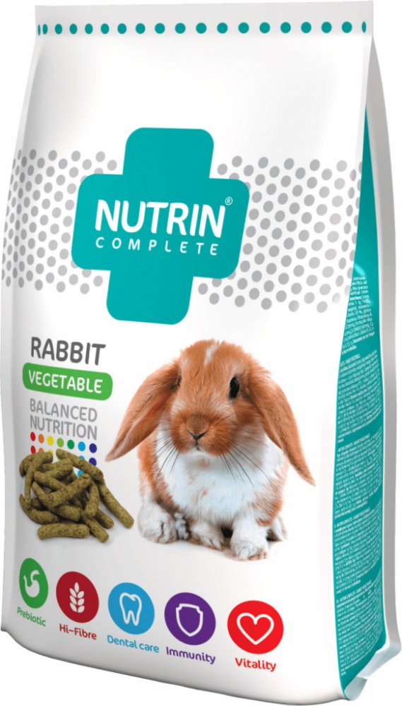 U králíků v zájmovém chovu může docházet vlivem neadekvátní diety k častému problému přerůstání zubů. Vysoký obsah vlákniny, tvar, textura a tvrdost granulí NUTRIN Complete, nutí králíky hlodat a přežvykovat. Zuby se o sebe rovnoměrně otírají a může tak docházet k pravidelné redukci jejich přirozeného přírůstku.