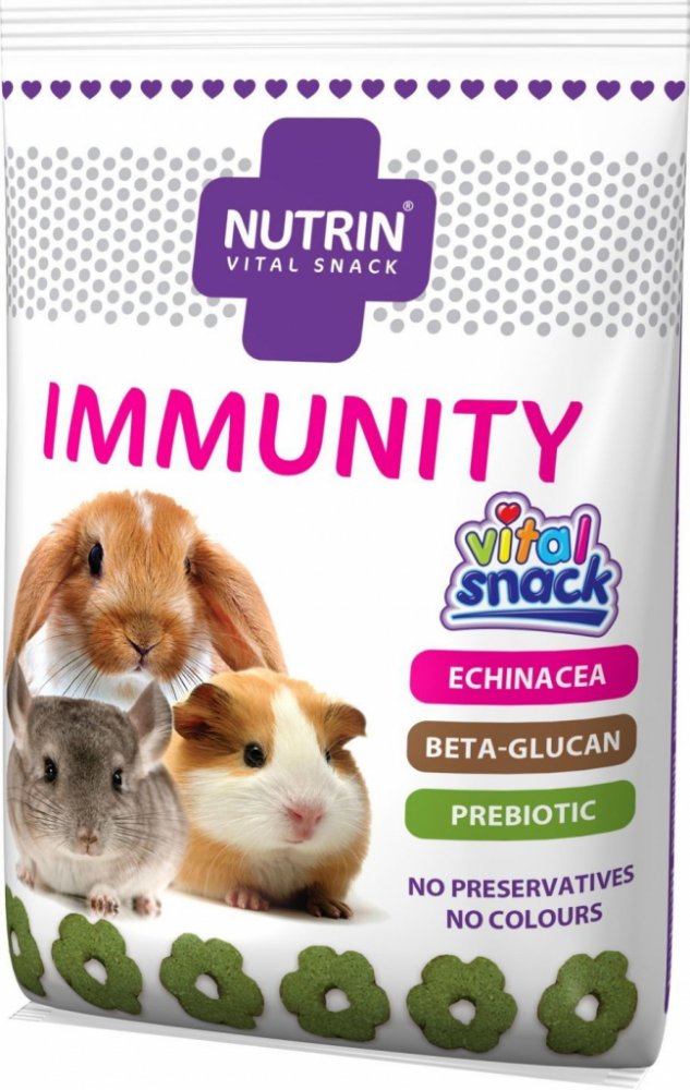 Doplňkové krmivo s echinaceou, betaglukanem, prebiotiky a zvýšeným obsahem vitamínů, podporuje imunitní systém.