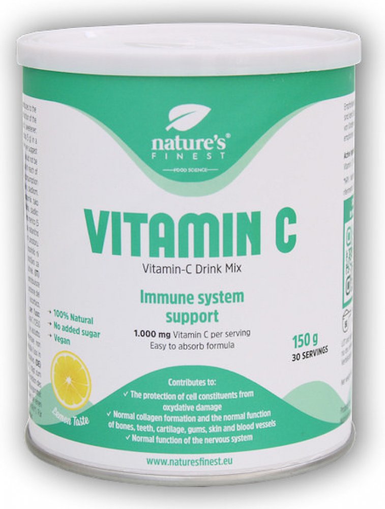 Vitamín C (kyselina askorbová) ve formě rozpustného nápoje s citrónovou příchutí. Dospělým se obvykle doporučuje přijmout nejméně 80 mg vitamínu C denně, jedna dávka Vitamin C Drink Mixu obsahuje 1000 mg. Produkt je dochucen steviol-glykosidy a erythritolem.