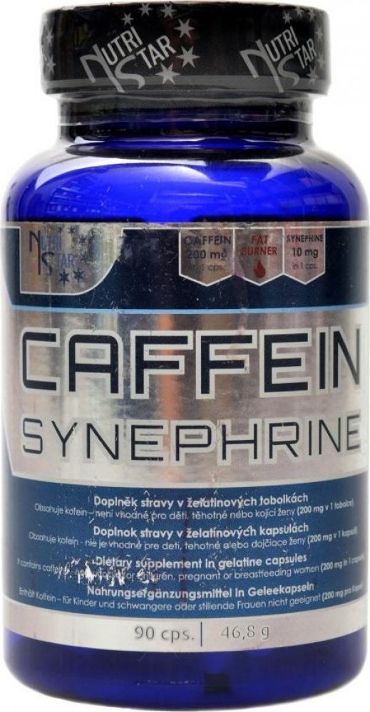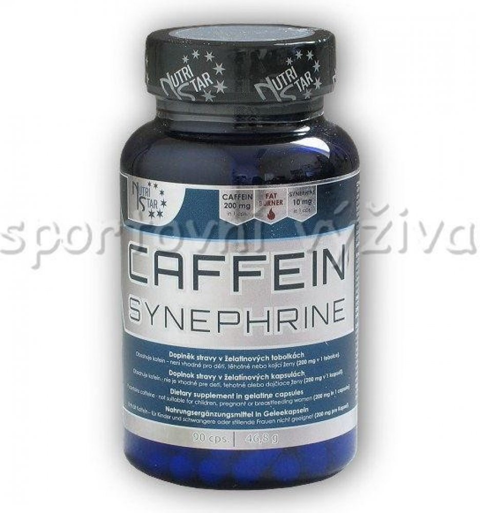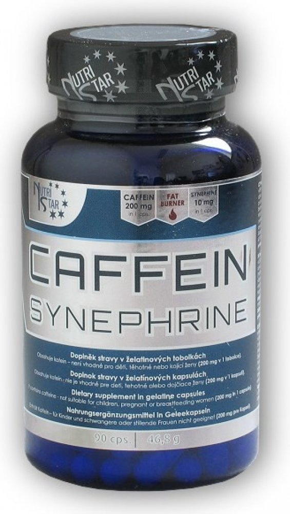 Nutristar kapsle 90 100 g synephrine se stimulanty se středním obsahem kofeinu 90 ks 90 ks Kofein 200 mg; Synefrin 10 mg Nevhodné pro děti a těhotné; obsahuje kofein 1 tobolka denně, 30 min před zátěží