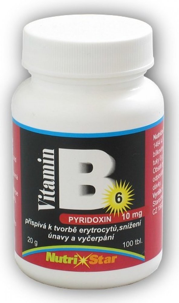 Nutristar 100 tbl tablety nervová soustava unisex 50 g Nutristar pro dospělé perorální od 3 let bez příchutě vitamín B6 energie a koncentrace 100 10.0 mg Kdykoliv 1 za den Suché místo + pokojová teplota, Chránit před světlem/sluncem, Mimo dos