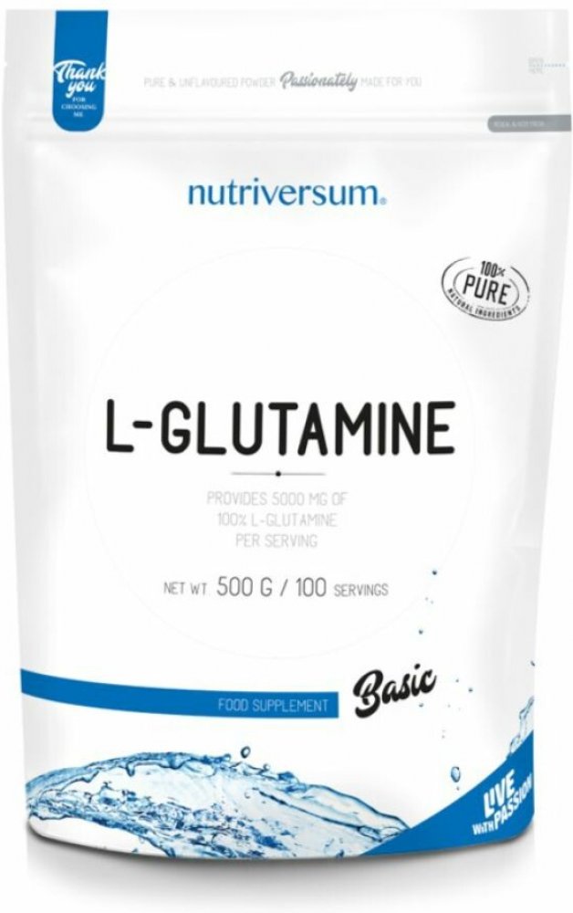 L-Glutamin je nejrozšířenější neesenciální aminokyselina, která se při cvičení spotřebovává ze všech nejvíce. Glutamin se využívá k tvorbě bílých krvinek a tak podporuje imunitní systém a regeneraci svalů.