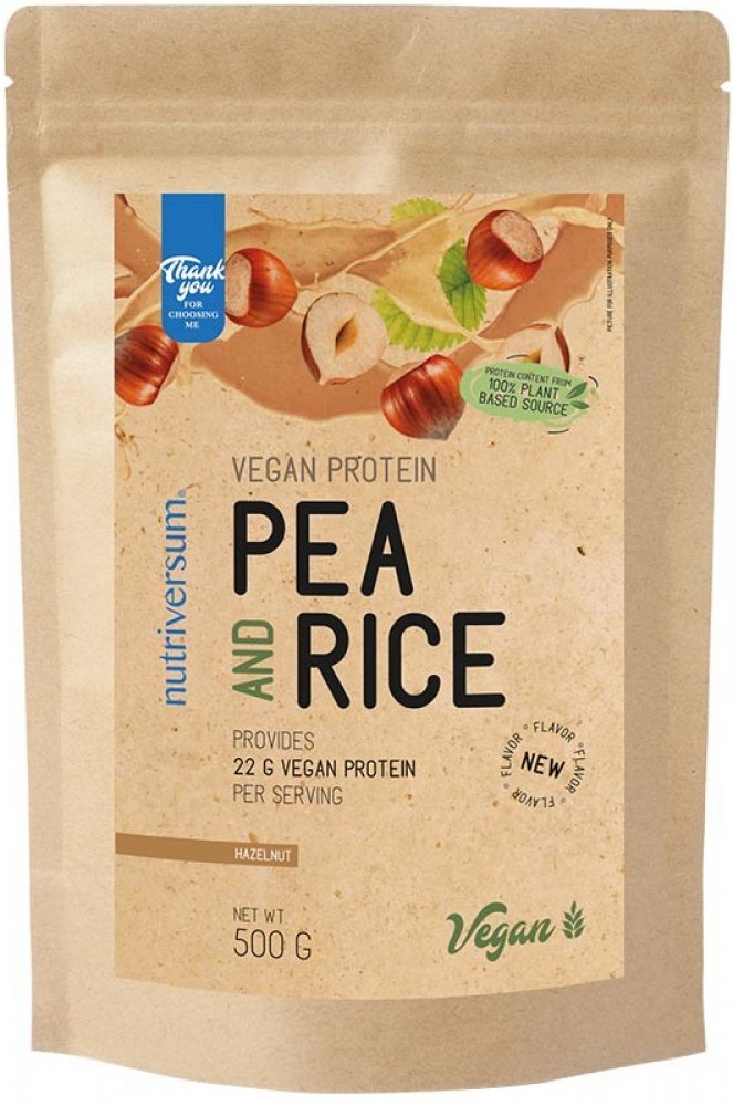 Nutriversum 500 g veganské práškové 20.0 g 30.0 g 16 ks hráchový protein, rýžový protein 12.0 g/100 ml