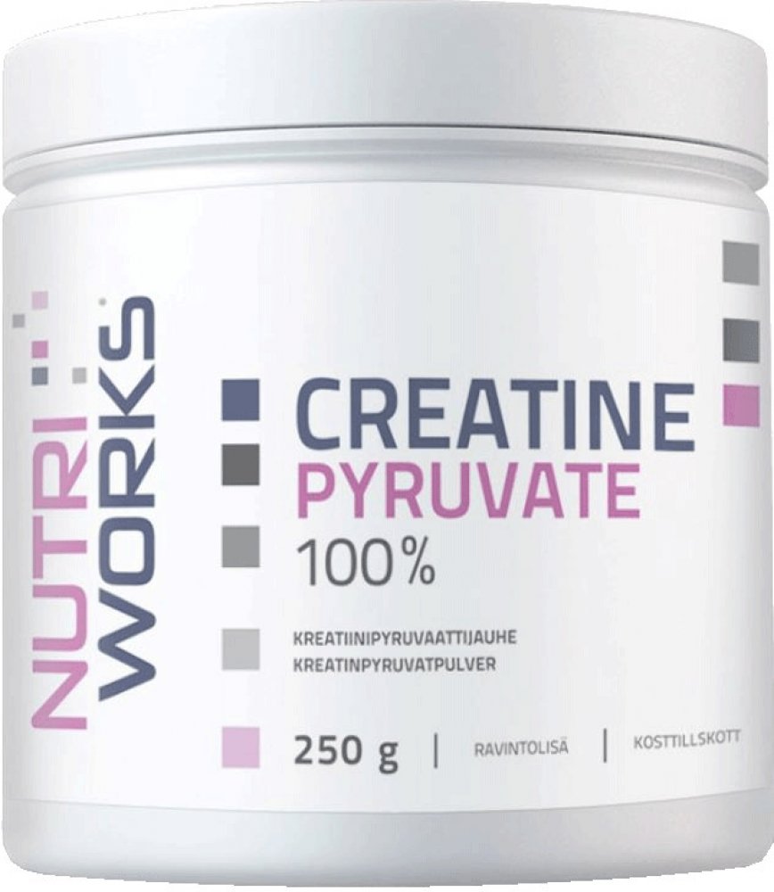 Kreatin pyruvát je sloučenina, kde je kreatin navázaný na kyselinu pyrohroznovou. Pyruvát je součástí Krebsova cyklu, kde slouží jako významný zdroj energie, který nemůže být přeměněn na cukry, ale pouze na bu...