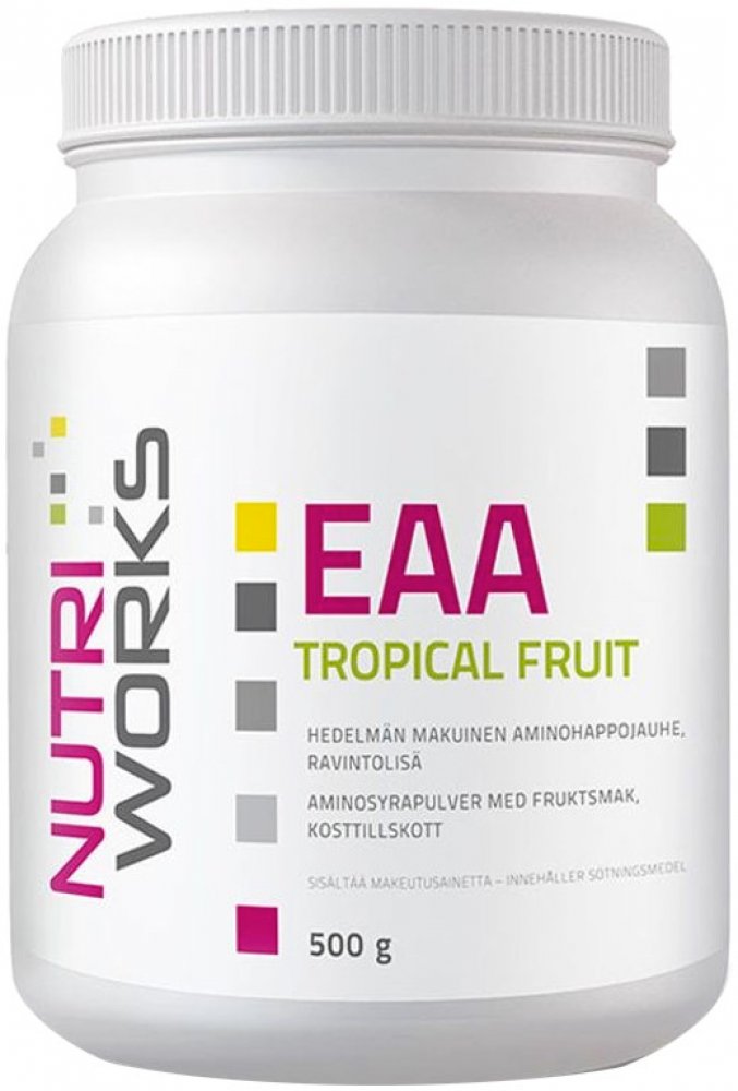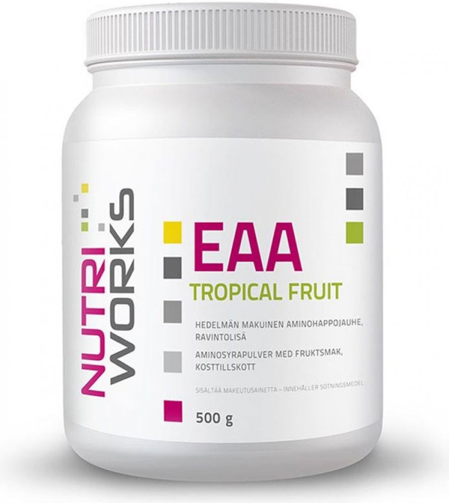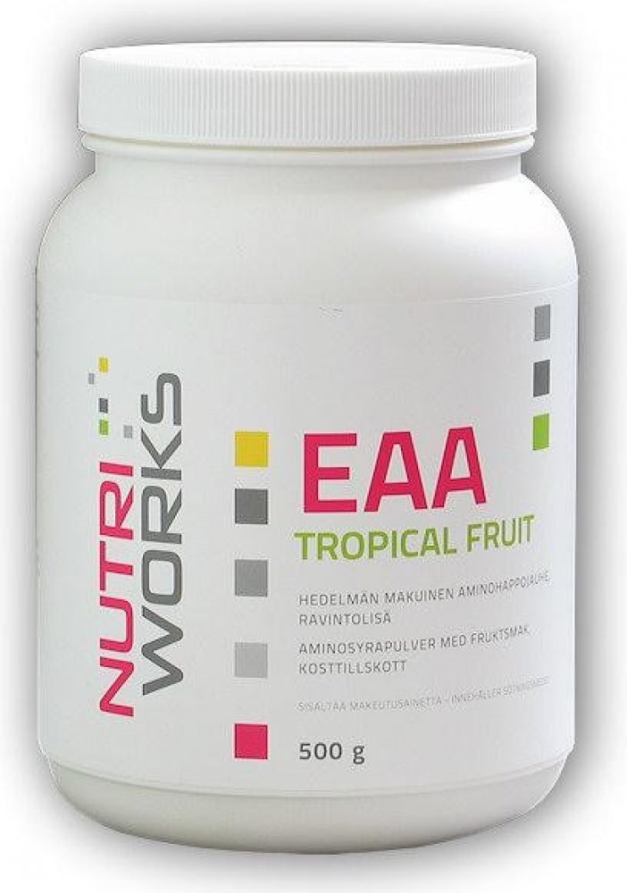 Nutriworks 500 g v prášku s EAA 12.8 g L-Lysin 2 g; L-Leucin 2 g; L-Citrulline malát 1.5 g 4.0 g/porce 8.5 g/porce 38 porcí