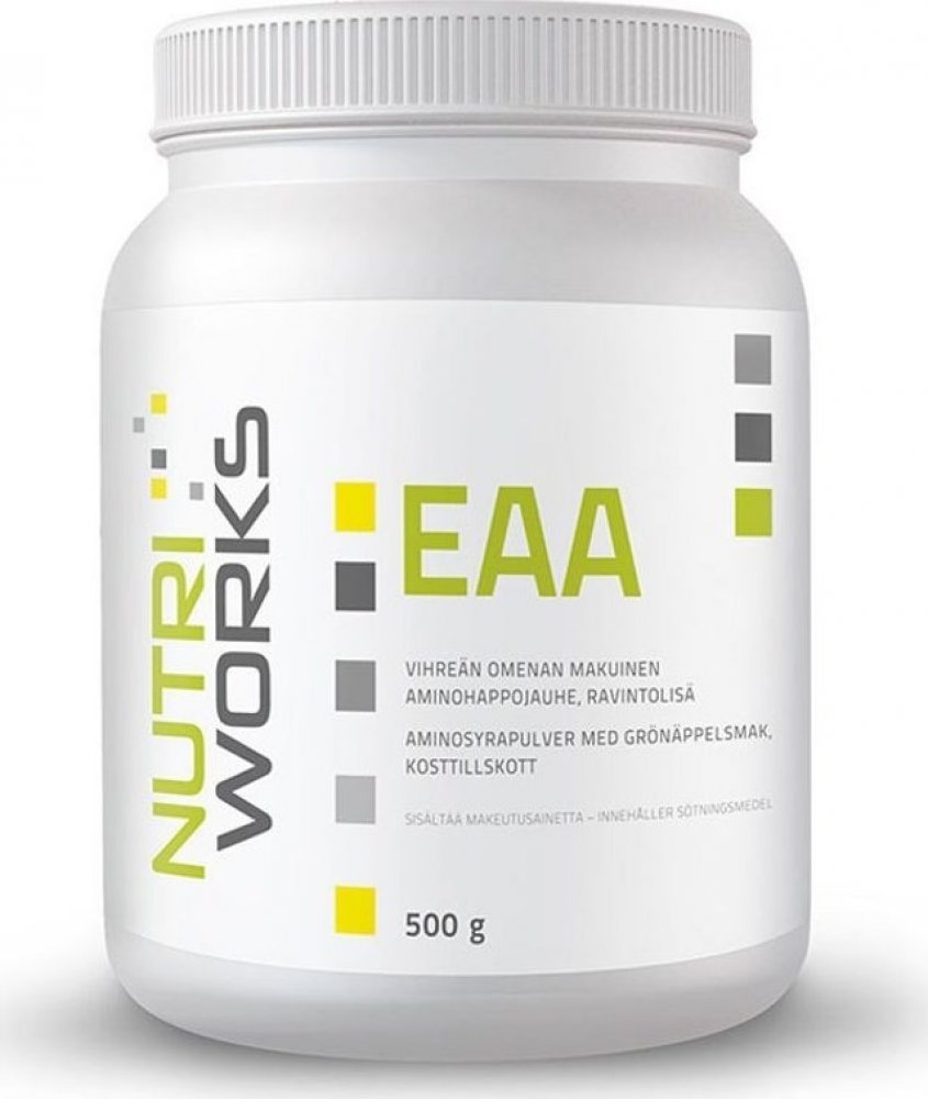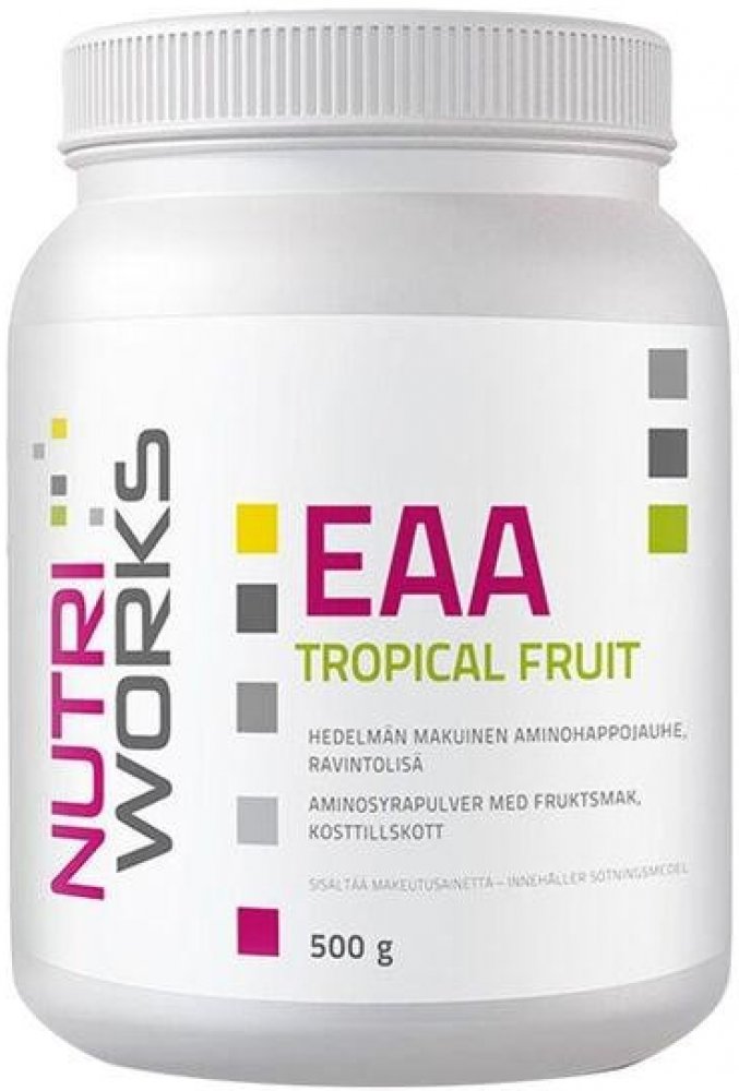 V EAA Nutriworks je navíc aditivum citrulin-malátu, který je rovněž zaměřený na oblast svalové únavy a také na posílení maximalizace výkonu. Produkt neobsahuje žádná umělá sladidla ani aditiva, slazený je pouze steviol-glykosidy, nebo je nabízen v naturální verzi. EAA Nutriworks jsou ideální podporou aktivního životního stylu.