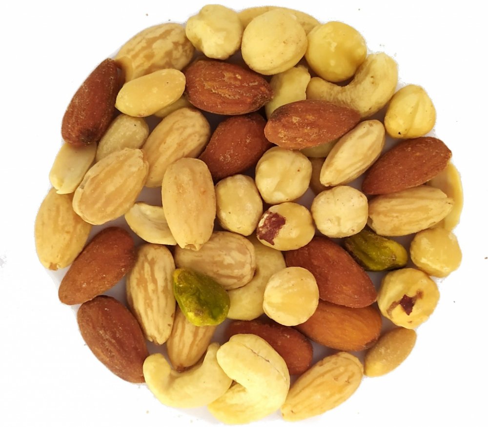 Složení: 15 % arašídy loupané pražené, 15 % kešu natural, 15 % lískový ořech jádra pražená, 25 % mandle pražené solené, 25 % mandle pražené solené uzené, 5 % pistácie loupané Alergeny: Skořápkové plody. Může obsahovat stopy oxidu siřičitého, arašídů, sezamu, sóji a výrobky z nich. Upozornění: Výrobek obsahuje skořápky/pecky. Z tohoto důvodu není vhodný pro děti do 3 let. Skladování: Skladujte v suchu při teplotě do 20°C. Po otevření ihned spotřebujete. Chraňte před přímým slunečním zářením. Ta kombinace slaných mandlí a kešu s lískovým oříškem je naprosto parádní. A když do toho ještě přidáme loupané pistácie…..prostě bomba. VĚDĚLI JSTE? …. Že pistácie jsou nejen zdravé, ale také obsahují dost vlákniny, čímž vám stačí menší množství. Pokud vás takové chutě večer přepadnou, zkuste si trochu pistácií dát, pozřete menší množství kalorií, což je na večer nejideálnější. Pojďme na to. NUTSMAN směsi Výroba směsí se skládá z několika kroků, ale na začátku je vždy receptura. Na její tvorbě se podílí hned několik lidí a ti se musí dohodnout (což není úplně jednoduché, protože 100 lidí 100 chutí a ještě více názorů) na její konečné podobě. Nakonec tak vznikne hned několik směsí, které mají potenciál stát se oblíbené. Ale to už necháváme na Vás zákaznících. Napište nám co vám v které chutnalo/nechutnalo, čím by šla vylepšit a mi rádi vaše poznatky zavedeme k nám do výroby. Podílejte se tak na svých oblíbených produktech. Ať Vám chutnají NUTSMAN team