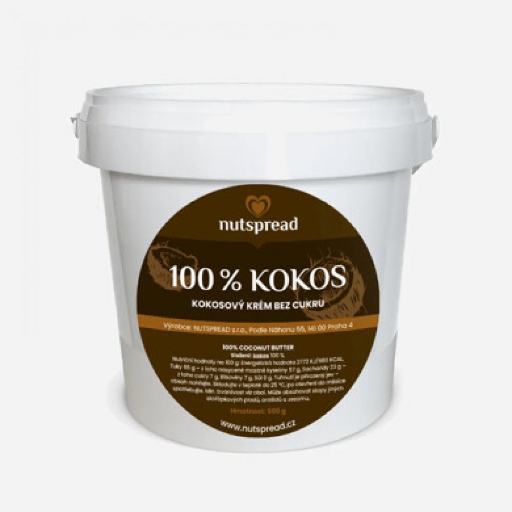 Nutspread 100% kokosové máslo 500 g. Máslo z kokosového ořechu je ideální jen tak na lžičku jako zdravé mlsání, osvědčí se Vám při výrobě domácích raw zmrzlin, kokosových dezertů, krémů a sušenek. Při pokojové teplotě přirozeně tuhne, výborně se proto hodí na nepečené dorty nebo populární rafaelo kuličky, které díky němu drží pohromadě i bez použití mouky nebo vajec. Kokosové máslo Nutspread je tak nepostradatelnou surovinou do kuchyně pro celiaky, alergiky na ořechy, lidi s cukrovkou nebo dalšími dietními omezeními. Složení: Kokos 100 %.