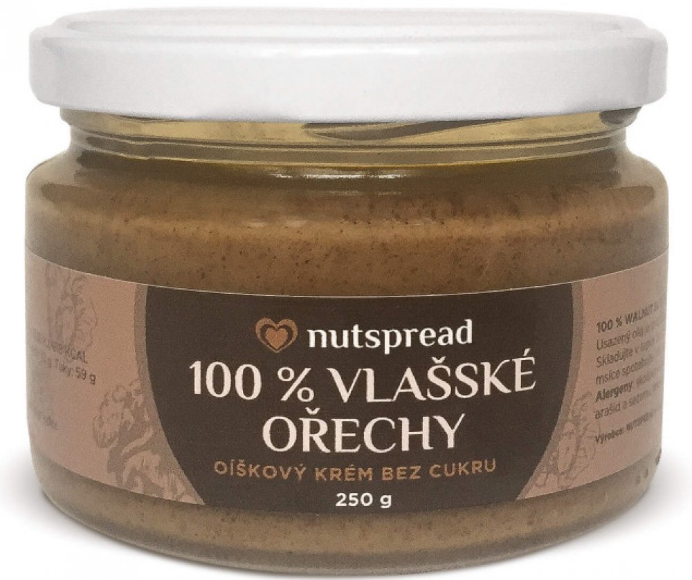 Podle čínské medicíny vlašské ořechy vyživují a posilují dráhu ledvin a prohřívají tělo, všeobecně známé jsou jako prostředek na posílení paměti a mozku. Díky svému nízkému glykemickému indexu a vysoké sytivosti jsou ideálním doplňkem redukčních diet a pomocníkem každého, kdo si hlídá příjem sacharidů. V podobě lahodného oříškového krému Nutspread chutnají tyto ořechy tak báječně, že vám s nimi hubnutí půjde doslova samo.