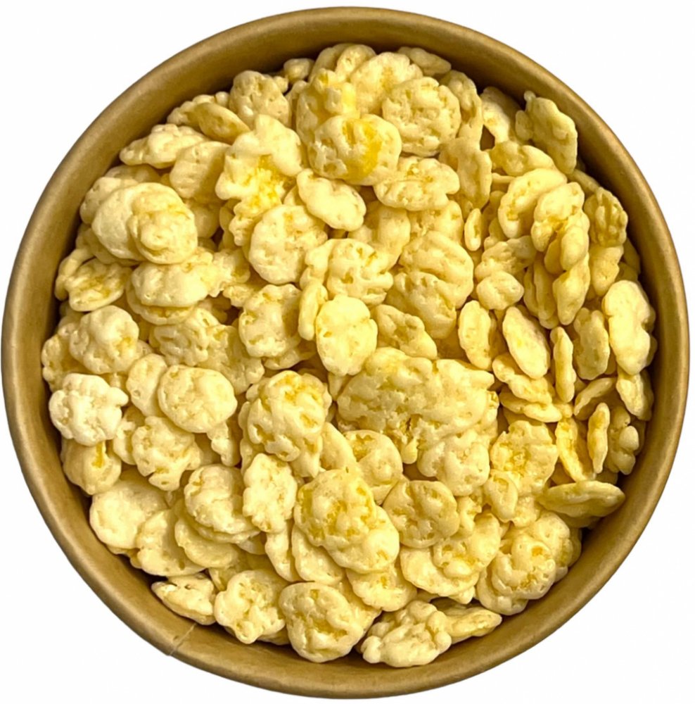 Složení: POLEVA S JOGURTOVOU PŘÍCHUTÍ MIN. 57 % ˗ cukr, částečně ztužený rostlinný tuk (palmový, sójový*, řepkový), sušená syrovátka, sušený jogurt 2% (mléko, jogurtová kultura), sušené odstředěné mléko, regulátor kyselosti: kyselina citronová, emulgátory: slunečnicový lecitin E322 a polyglycerylpolyricinoleát E476, aroma KUKUŘIČNÉ LUPÍNKY 43 % ˗ kukuřičná krupice, cukr, jedlá sůl,JEČNÝ SLADOVÝ VÝTAŽEK, barvivo: uhličitan vápenatý, LEŠTICÍ SMĚS - tapiokový škrob, cukr, lešticí látka: šelak E904, kokosový olej, kyselina: kyselina citronová E330, konzervant: kyselina sorbová E200