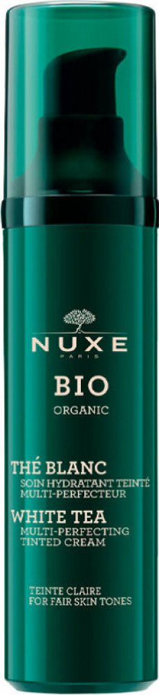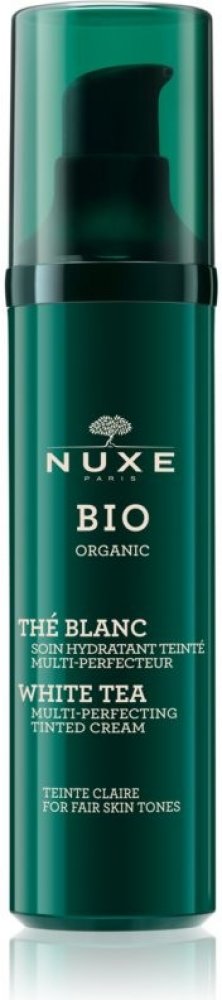 Pleťový krém s bílým čajem dodává hydrataci a nabízí přirozený vzhled „dokonalé pleti“, který vydrží po celý den. Jeho příjemná textura bohatá na minerální pigmenty je k dispozici ve 2 odstínech. Krém vyhlazuje jemné linky, eliminuje zarudnutí a tmavé skvrny a sjednocuje tón pleti.Složení Tento hydratační tónovací krém na obličej je obohacen mimo jiné o zelený čaj. Krém dodává pleti rovnoměrný vzhled. Jemné vrásky jsou minimalizovány a zarudnutí je méně viditelné. Výrobek je k dispozici ve dvou různých barvách. Nezapomeňte, že obsahuje 99 % přírodních složek. [b]Nuxe Organic Tinted Moisturising Cream Colour Light[/b][br][br]Nuxe Organic White Tea Multi-Perfecting Tinted Cream je lehce tónovaný denní krém, který koriguje skvrny, zarudnutí a nečistoty. Důležitou složkou krému je bílý čaj, který chrání před vlivy prostředí, které vedou k předčasnému stárnutí pleti. Minerální pigmenty mají zmatňující účinek a zajišťují rovnoměrnější, a tedy svěžejší a mladší vzhled pleti. [br][br][br][b]Použití:[/b][br][br]Ráno po vyčištění pleti naneste krém na obličej nebo na určité partie. Bio organický tónovací krém s bílým čajem - denní pleťový krém Doplněk pro krásu a zdraví Nuxe Bio White Tea Multi-Perfecting tónovací krém 50 ml