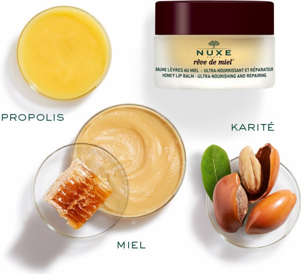 Podrobnosti o produktu Ultra výživný balzám na rty Nuxe Rêve de Miel obnovuje pružnost a zajišťuje pohodlí. Tato koncentrovaná péče ulevuje vysušeným a popraskaným rtům. Přináší ochranu a nezaměnitelnou hebkost. Efektivně zvláčňuje a zjemňuje. Poskytuje vašim rtům okamžitou úlevu a pocit zklidnění.