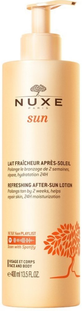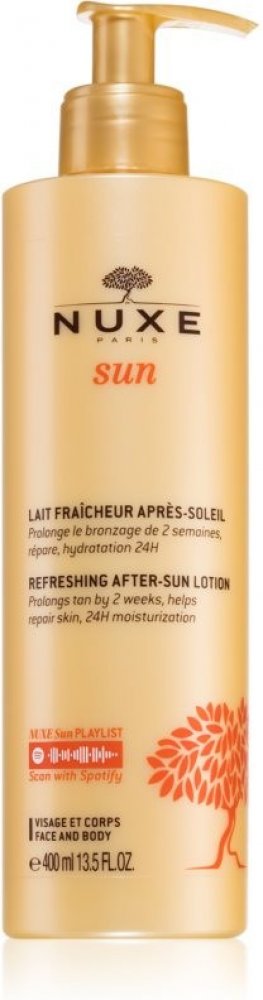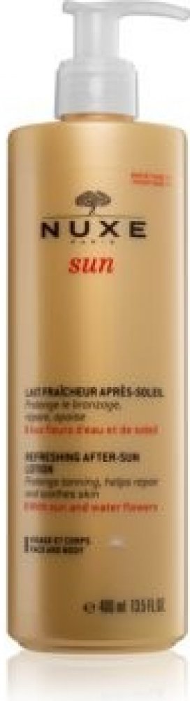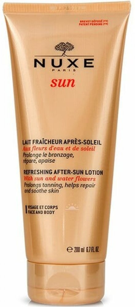 Osvěžující mléko po opalování na obličej a tělo od Nuxe je lehké pečující mléko, které jemně vyživuje a osvěžuje pokožku po opalování. Péče obnovuje a zklidňuje sluncem namáhanou pokožku. Jeho složení je obohaceno o vitamin E, vodní hyacint, květ žvýkacího hrachu z Markézských ostrovů, výtažek z cest a extrakt z rozmarýnu. Hydratuje pokožku a zanechává ji vyživenou a zářivou. Při pravidelném používání prodlužuje opálení až o 2 týdny. Zanechává pokožku s krásným hedvábně matným leskem. Zklidňující péče pro hedvábně jemnou pokožku s přirozeně krásným opálením .Osvěžující mléko po opalování na obličej a tělo od Nuxe intenzivně hydratuje pokožku po opalování a zanechává ji zdravou a svěží. Jemně zklidňuje podrážděnou pokožku. Opravuje pokožku a zajišťuje dlouhotrvající opálení. Jeho lehká textura se okamžitě vstřebává a dodává pokožce pocit pohody a uvolnění. Zároveň hýčká tělo a smysly svou nádhernou vůní, která kombinuje tóny sladkého pomeranče, květu tiare a vanilky. Je vhodný na tělo i obličej a je vyroben z čistě rostlinných složek. Tělové mléko aplikujte na pokožku po opalování. Užijte si osvěženou, zdravou a hedvábně hladkou pokožku!