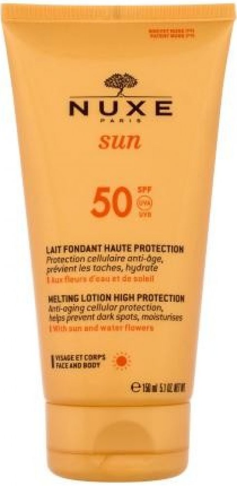 Kvalitní NUXE SUN mléko na obličej a tělo SPF50 (150ml) za 549 Kč. MLÉKO S VYSOKOU OCHRANOU – SPF 50 OBLIČEJ A TĚLO S vodními a slunečními květy. Působí proti stárnutí buněk a jako prevence vzniku pigmentových skvrn, hydratuje. Fotostabilní. Nekomedogenní. Neobsahuje látky živočišného původu. Patentováno. Použití Než se začnete opalovat, naneste přípravek v dostatečném množství. Aplikaci opakujte po koupání nebo osušení ručníkem. Upozornění Pokud není přípravek aplikován v dostatečném množství, tak se úroveň ochrany snižuje. Nadměrná expozice na slunci je nebezpečná. Vyhněte se expozici slunci kolem poledne. Solární produkt vám nezaručí 100% ochranu.