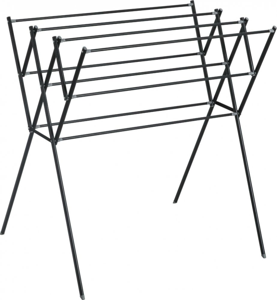 Skládací sušák na prádlo, skládací, černý kov, 3 úrovně, 9 metrů sušící plochyNejdůležitější vlastnosti produktuKaskádová konstrukce: Tříúrovňová konstrukce zahrnuje celkem 9 tyčí rozmístěných v konfiguraci: 4 nahoře, 3 uprostřed a 2 dole. Velká vzdálenost mezi tyčemi (18 cm) zajišťuje vynikající cirkulaci vzduchu.Snadná obsluha: Konstrukce založená na pásech činí sušák snadno rozložitelným. Po sl...