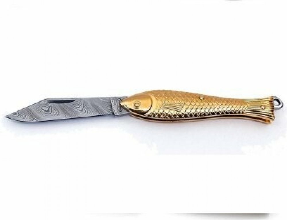 Nůž kapesní Rybička, damašková ocel, pozlacená, 130-DZ-1, Mikov