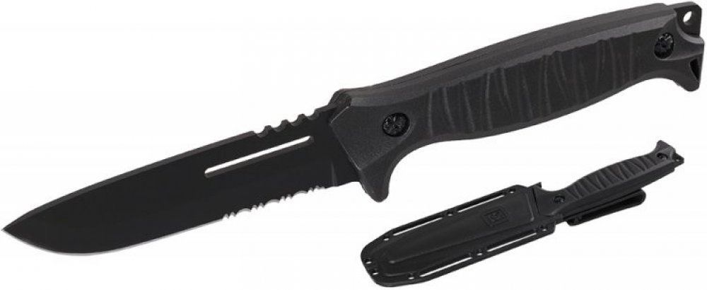Moderní lovecký - outdoorový nůž s pouzdrem, délka 210 mm. Nůž je vyroben z jednoho kusu nerezové oceli, čepel s teflonovým povrchem, délka 100 mm