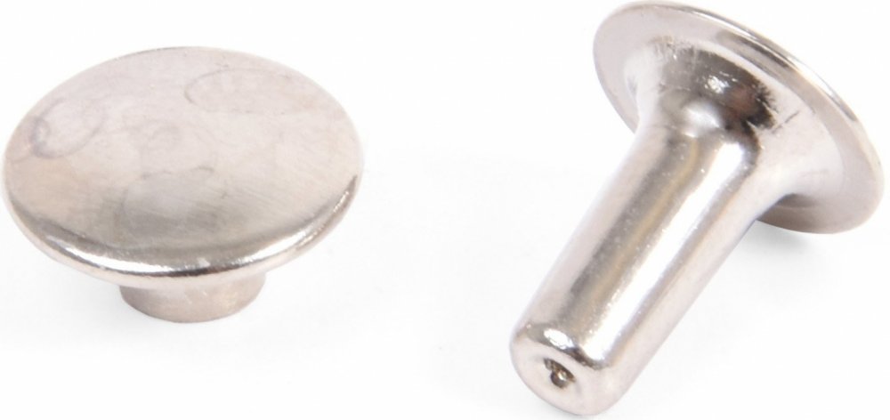Nýt sedlářský dvoudílný 2 díly - hlava a tělo zatloukací použití pro spojení různých materiálů jako je kůže, koženka, filc, látky apod. vhodný pro výrobu kabelek, tašek, opasků a dalších výrobků materiál: kov rozměr v tabulce s variantami: průměr x délka těla nýtu (A-B v tabulce)