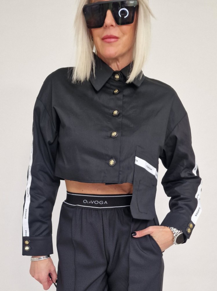 Super krátká košile se zapínáním na knoflíky, dlouhým rukávem a nášivkami s logem.