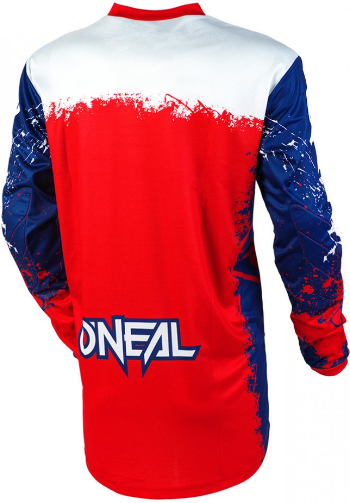 Dres pro MX a MTB. Neblednoucí grafika díky sublimačnímu potisku. Materiál velmi dobře odvádí vlhkost, absorbuje pot. Lokty jsou polstrované a chráněné gumovým potiskem. Prodloužená zadní část brání vytahování dresu z kalhot. Dres má extrémně flexibilní límec, kompatibilní se všemi chrániči krční pá