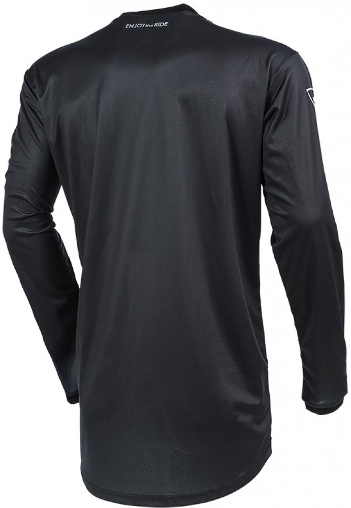 Dres pro MX a MTB. Neblednoucí grafika díky sublimačnímu potisku. Materiál velmi dobře odvádí vlhkost, absorbuje pot. Lokty jsou polstrované a chráněné gumovým potiskem. Prodloužená zadní část brání vytahování dresu z kalhot. Dres má extrémně flexibilní límec, kompatibilní se všemi chrániči krční páteře.
