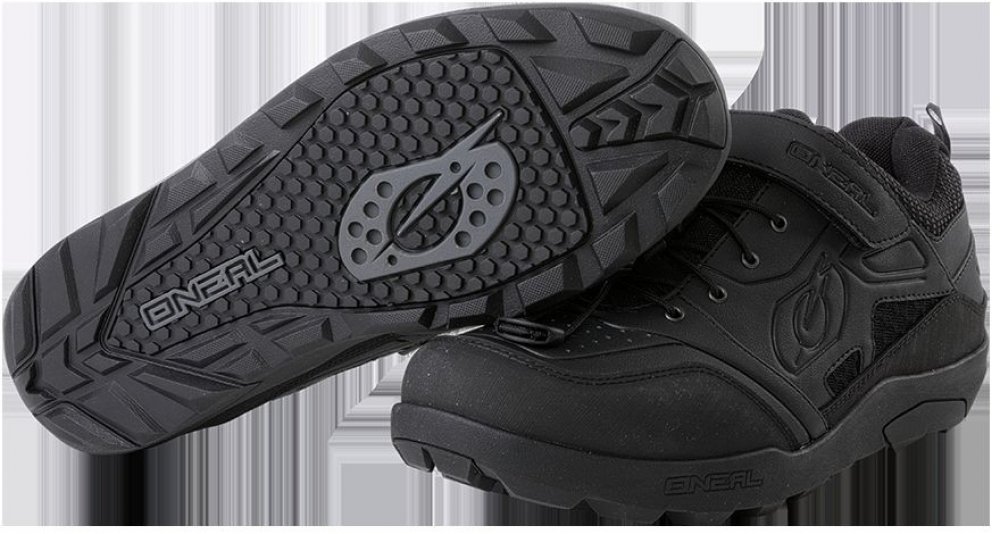 Boty O´Neal Session SPD, černá Zcela nový model bot pro SPD pedály. Velmi dobře odvětraná bota. Vrchní suchý zip pro bezpečné a pohodlné utažení boty. Podrážka O'Neal Honey Rubber® Utažení bot pomocí BOA kolečka a lanka. Vyjímatelná a vyměnitelná vložka boty. Zesílená špička pro lepší ochranu nohy.