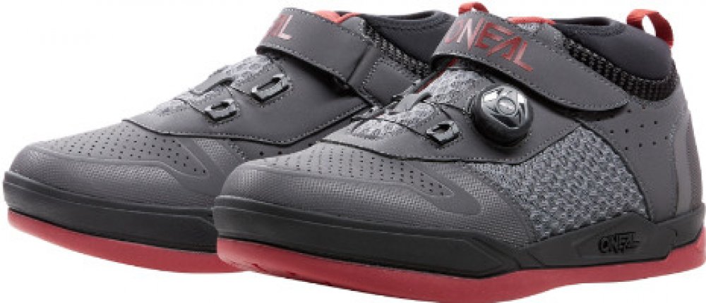 Boty O´Neal Session SPD šedá/červená Zcela nový model bot pro SPD pedály. Velmi dobře odvětraná bota. Vrchní suchý zip pro bezpečné a pohodlné utažení boty. Podrážka O'Neal Honey Rubber® Utažení bot pomocí BOA kolečka a lanka. Vyjímatelná a vyměnitelná vložka boty. Zesílená špička pro lepší ochranu nohy. materiál: Svrchní materiál 75% polyuretane, 25% polyester (90% polyester, 10% spandex); podšív...
