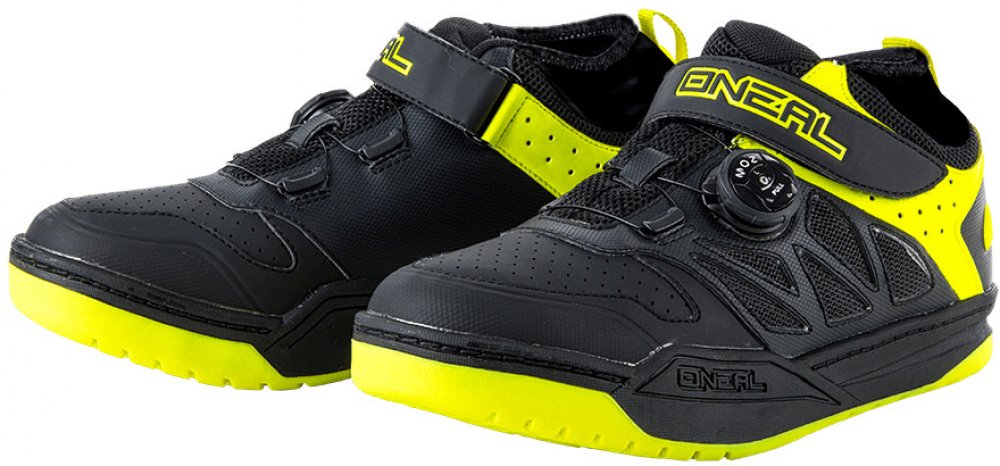 Boty O´Neal Session SPD, žlutá Zcela nový model bot pro SPD pedály. Velmi dobře odvětraná bota. Vrchní suchý zip pro bezpečné a pohodlné utažení boty. Podrážka O'Neal Honey Rubber® Utažení bot pomocí kolečka a lanka. Vyjímatelná a vyměnitelná vložka boty. Zesílená špička pro lepší ochranu n