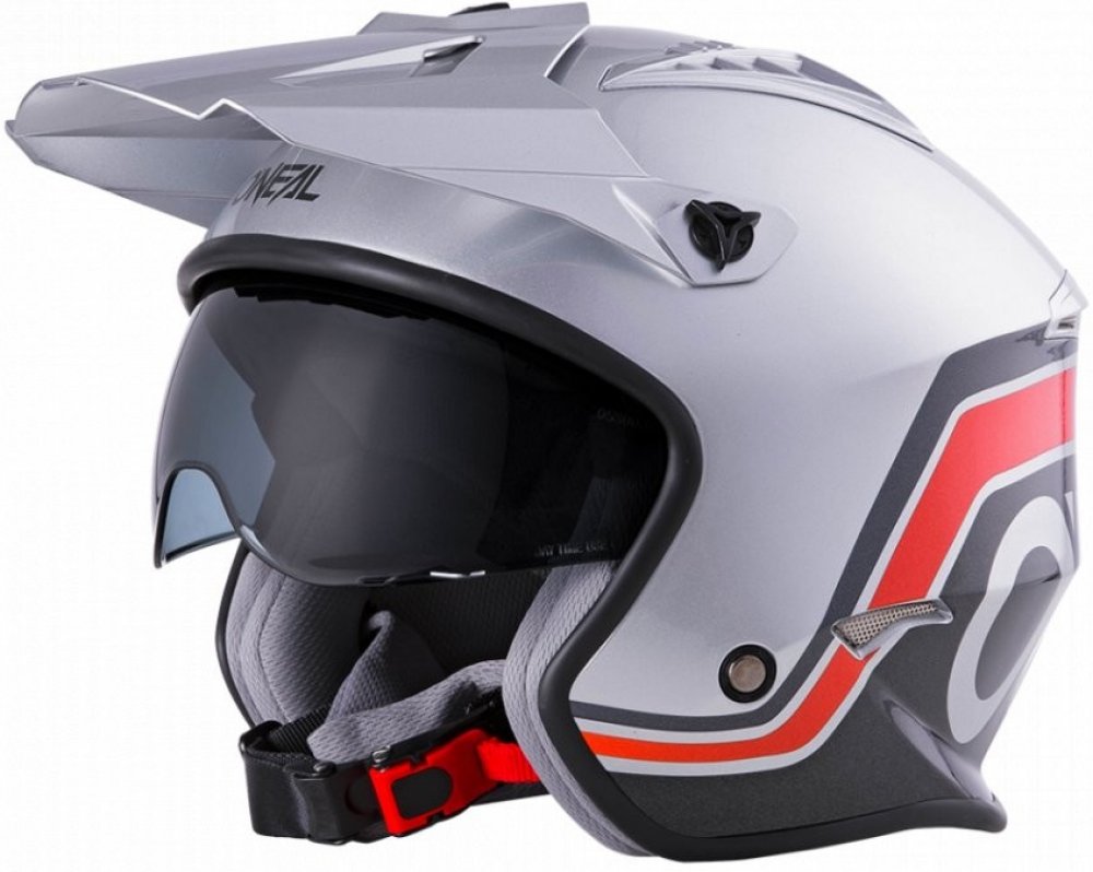 Přilba pro trial a skútr. Lehká konstrukce z ABS. Zapínání na přezku. Větrací otvory. Vyjímatelné. pratelné, pot absorbující polstrování. Výškově nastavitelný kšilt. Splňuje normu ECE 22.05.