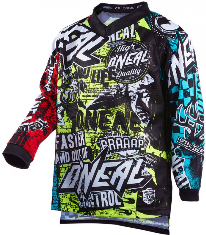 Dres pro MX a MTB. Výrazná, neblednoucí grafika díky sublimačnímu potisku. Materiál velmi dobře odvádí vlhkost, absorbuje pot. Polstrované a prošívané lokty. Prodloužená zadní část brání vytahování dresu z kalhot. Dres má extrémně pružný V-límec, kompatibilní se všemi chrániči krční páteře.