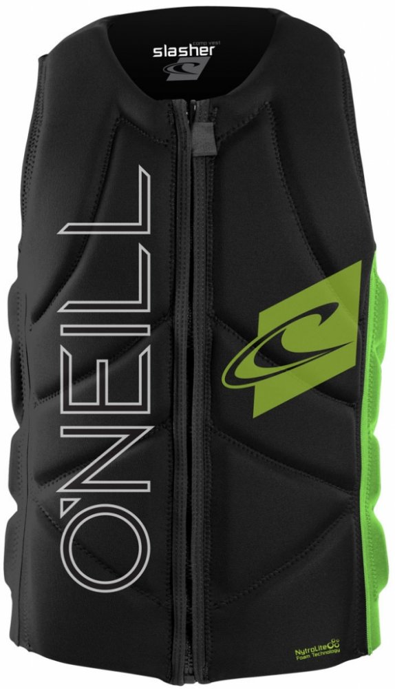 Vesty O'neill jsou vyvíjeny a testovány nejlepšími sportovci a Slasher Comp a je toho jasným důkazem. Je vyrobena z exkluzivní NytroLite pěny, díky které je lehčí a mnohem rychleji schne. Pohodlné oblékání umožňuje přední zip a pružné průramky. Vesta Slasher je určena pro wakeboarding a waterskiig. Není schválena Pobřežní hlídkou Spojených států (USCG) jako záchranná vesta.