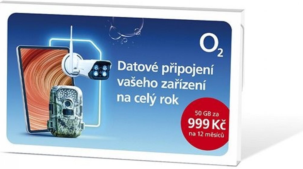 Předplacená O2 SIM karta Roční datové připojení 50GBSpolečnost O2 přichází s limitovanou edicí předplacené SIM karty, na které fungují pouze data. Jde tak o mimořádně zajímavé řešení pro celou řadu chytrých zařízení. Ať už jde například o kamery, fotopasti nebo různé zabezpečovací systémy. Datový paušál 50 GB je k dispozici na 365 dní od prvotní aktivace a funguje v rámci celé ČR. Klíčové vlastnosti předplacená SIM karta O2 SIM karta Roční datové připojení 50GBV ceně SIM karty máte 50 GB dat na 12 měsíců50 GB stačí pro celoroční fungování fotopastí s vyšším rozlišením snímků, kamer a podobných bezpečnostních zařízeníPřipojení k 5G síti kdekoliv v ČRVšechna upozornění Vám pošleme prostřednictvím SMS na váš mobil, o svém připojení tak budete mít vždy přehled.Platba a správa tarifu jednoduše v aplikaci Moje O2Jak si data na rok zapnete?1.Vylomte SIM kartu z plastové kartičky a vložte ji do zapnutého zařízení. PIN na SIM kartě je vypnutý.2.V případě potřeby si nastavte zasílání...