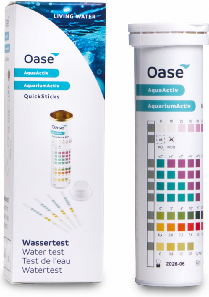 Testovací proužky Oase AquaActiv QuickStick pro rychlé stanovení potřebných hodnot vody v zahradním jezírku.