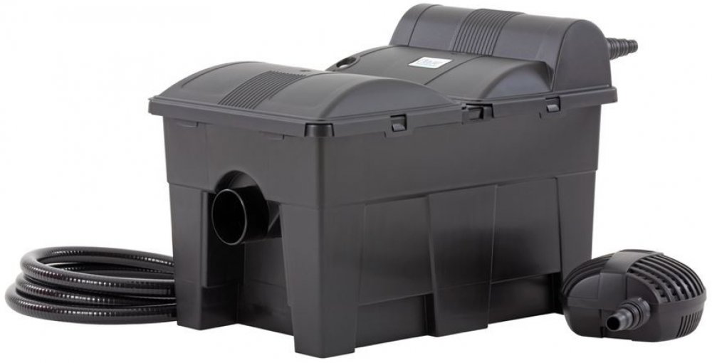 Set se skládá z průtokového filtru BioSmart 14000, UV-lampy s výkonem 11 W a čerpadla FP 3500.