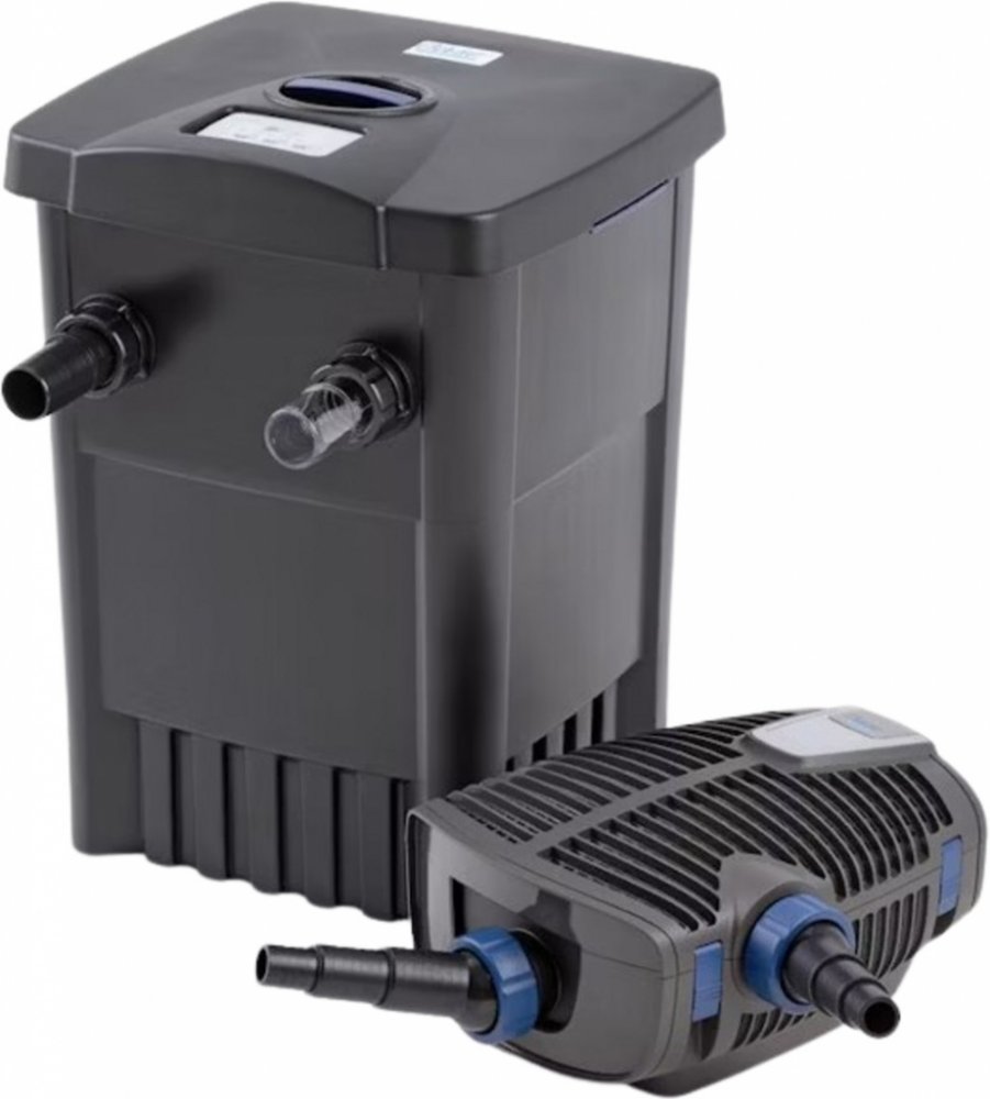 Filtomatic set 7000 - dokonalá kombinace průtokového filtru filtomatic 7000 s integrovaným uvc čisticím zařízením (uv lampa 11 w) a energeticky efektivním filtračním čerpadlem aquamax eco premium 4000startovací bakterie biokick cws 100 mljezírkový filtr filtomatic 7000 s automatickým samočištěním vhodný pro jezírka o objemu až do 7 m3 bez rybpro jezírko s rybami 3,7 m3, jezírko s koi 1,8 m3malé kalové čerpadlo odkaluje filtr dle požadavků z řídící jednotkyinteligentní ovládání filtrace díky inovativní řídicí jednotce s kontrolním ukazatelem teplotyautomatický odnos bahna díky funkci samočištění filtrupohodlné čištění filtračních huboptimální podmínky pro biologii filtru díky obzvlášť dlouhé době životnosti a vysoce kvalitním filtračním houbámmenší množství vláknitých řas díky neustálému odvádění fosfátů a živinoptimální poměr rozměrů zařízení a kapacity biologicko-mechanického čištěnív případě potřeby možnost rozšíření o provzdušňovač oxytex set 500parametry produktu:rozměry filtru: 38 x 38 x 52 cmnetto hmotnost: 17 kgjmenovité napětí: 230 v/ 50 hzspotřeba energie: 3 wpříkon čištění: 41 wdélka napájecího kabelu uvc zařízení: 10 muvc výkon: 11 wpočet filtračních hub: 2 ks fialových, 1 ks červenézobrazení teploty: digitálníuvc počítadlo provozních hod.: 8000 hodpřípojky na vstupu: 1 1/2 "(38 mm)výstupní připojení: dn 75přípojky na výstupu nečistot: dn 40příslušné filtrační / jezírkové čerpadlo: aquamax eco premium 5000rozměry čerpadla: 34 x 27,5 x 16 cmjmenovité napětí čerpadla: 220 - 240 v/ 50 - 60 hzmaximálně litrů za hodinu: 5000 l/ hoddélka napájecího kabelu čerpadla: 10 mvhodné pro jezírka o objemu až do maximálně: 7 m3vhodné pro jezírka s osazením rybami: 3,5 m3