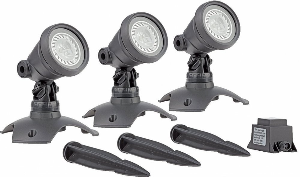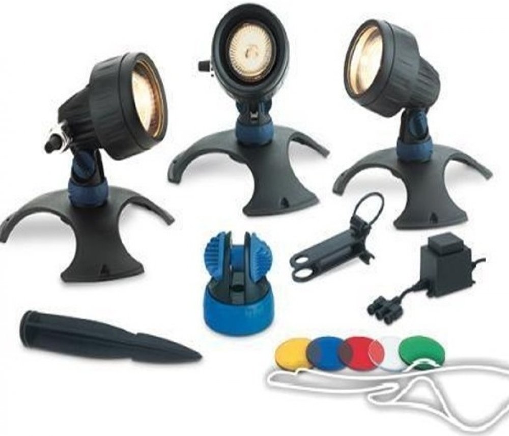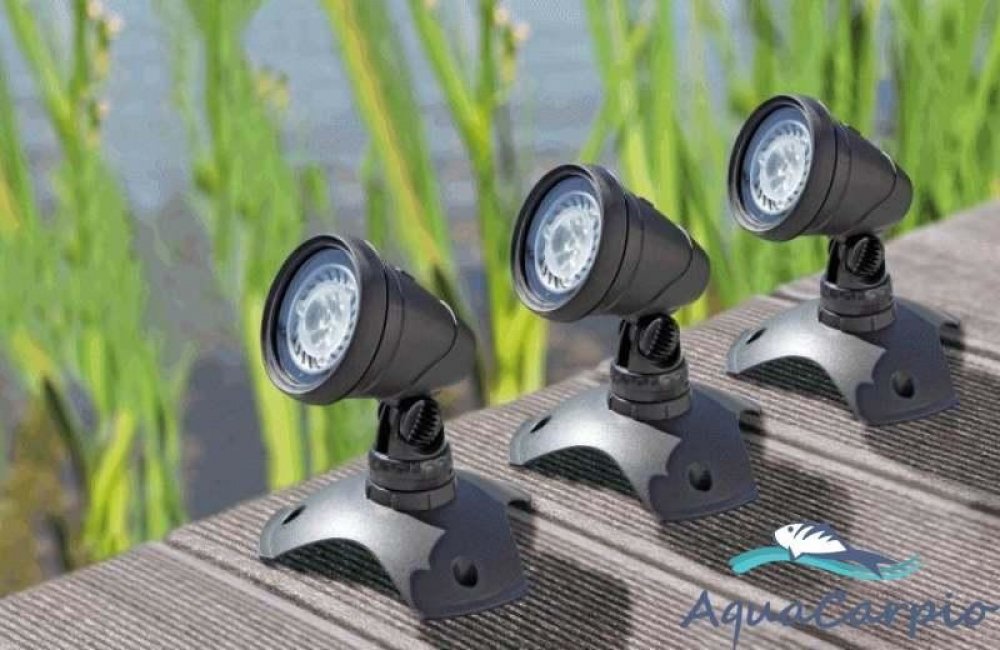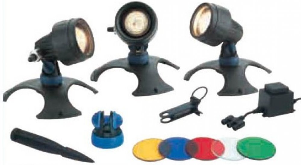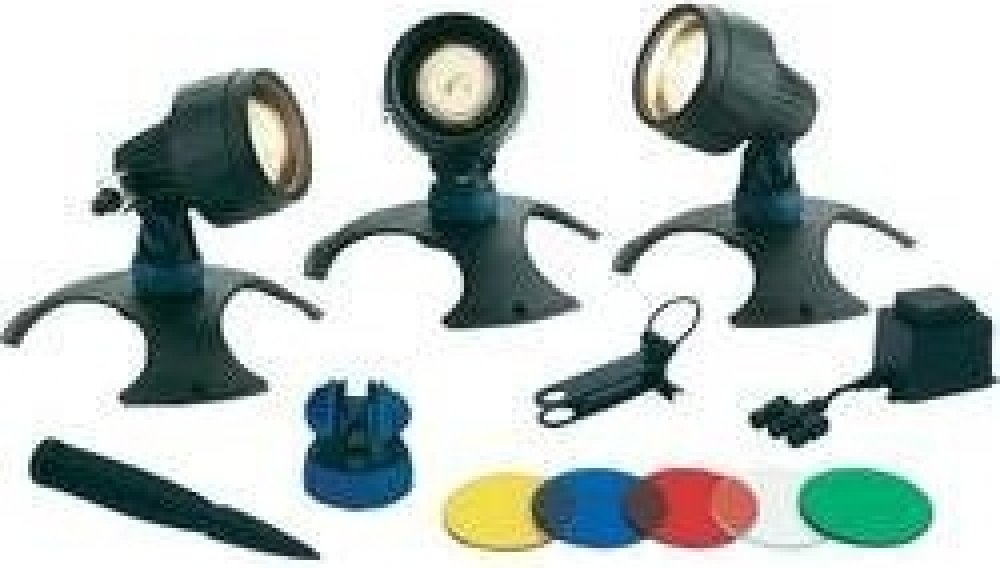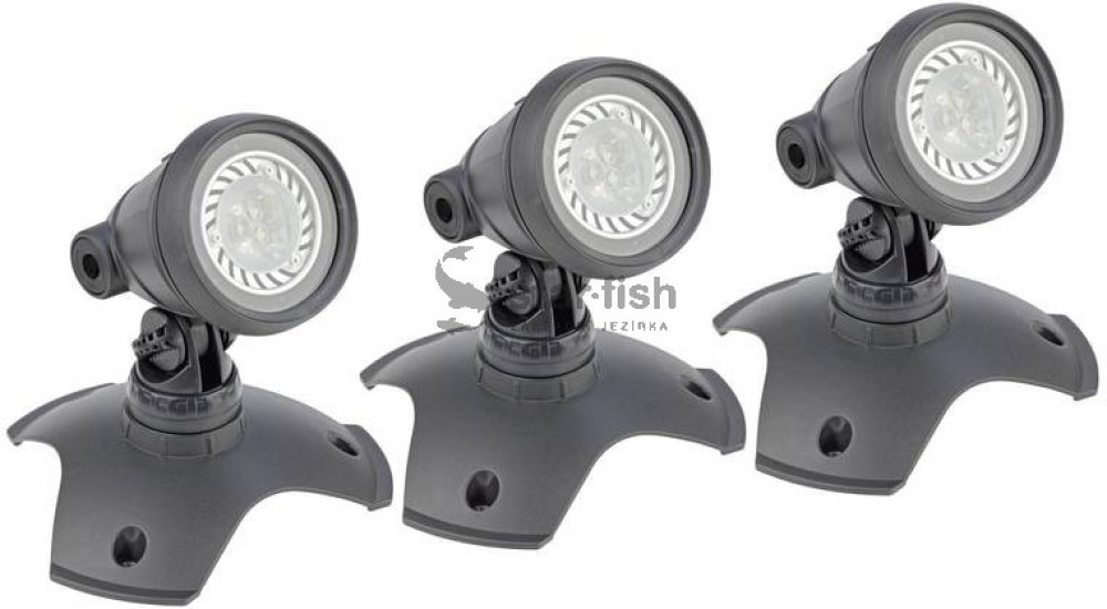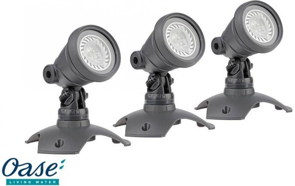 Jezírková a zahradní světla OASE Lunaqua 3 - Set 3 - Set tří LED reflektorů s barevnými skly použitelných pro zahradní okrasná i koupací jezírka, vodotrysky, rybníky, nádže apod. Světla disponují ochranným krytím IP 68 a je možné je použít do hloubky až 4m.Osvětlení je použitelné nad i pod vodní hladinou.